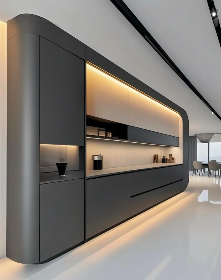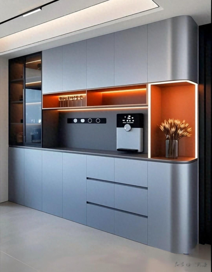 这款你从没见过的餐边柜,如覆没座艺术雕琢镶嵌空间,曲面的柔光消弭冷硬限度,暖调灯带沿层板错误流淌,为内饰摆件镀上一层和蔼的光晕,怒放格区域以造型岩板为底,纹路如浪潮相同舒展,阻塞储物柜哑光肤感,收纳功能于无形,藏露杂乱间,将收纳升华为好意思学叙事,让每一寸光影都成为家的诗意留白。