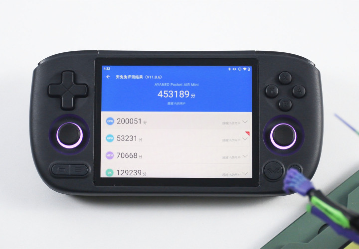另外,AYANEO Pocket AIR Mini的性能也还可以,搭载了联发科G90T处理器,4500mAh容量的电板,我用“安兔兔”测了下硬件性能,获利在45万傍边分,这性能模拟开头像FC、GBA等主机、掌机游戏问题不大,也能“摸到”部分PS2游戏,而系统则为安卓11。